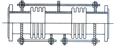 大拉杆横向型波纹补偿器可以补偿弯曲管段的横向位移和量值不大的角位移,公海贵宾会员检测中心通常不用来补偿角位移。该补偿器由接管、二个波纹管以及大拉杆等零件构成。它能吸收管系任意平面内的横向位移。位移球面螺母绕球面垫圈转动,同时拉杆还具有承受内压推力能力。